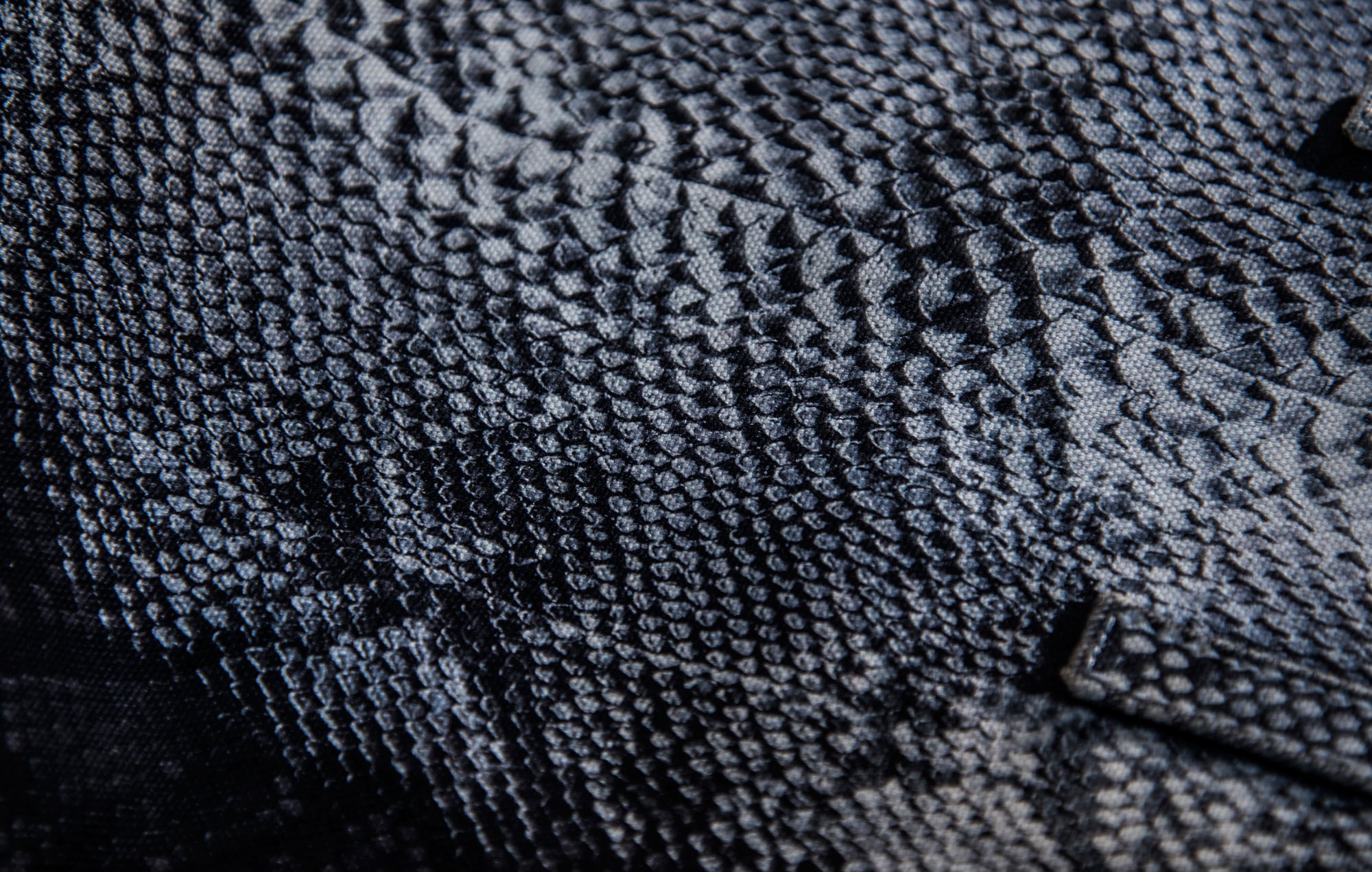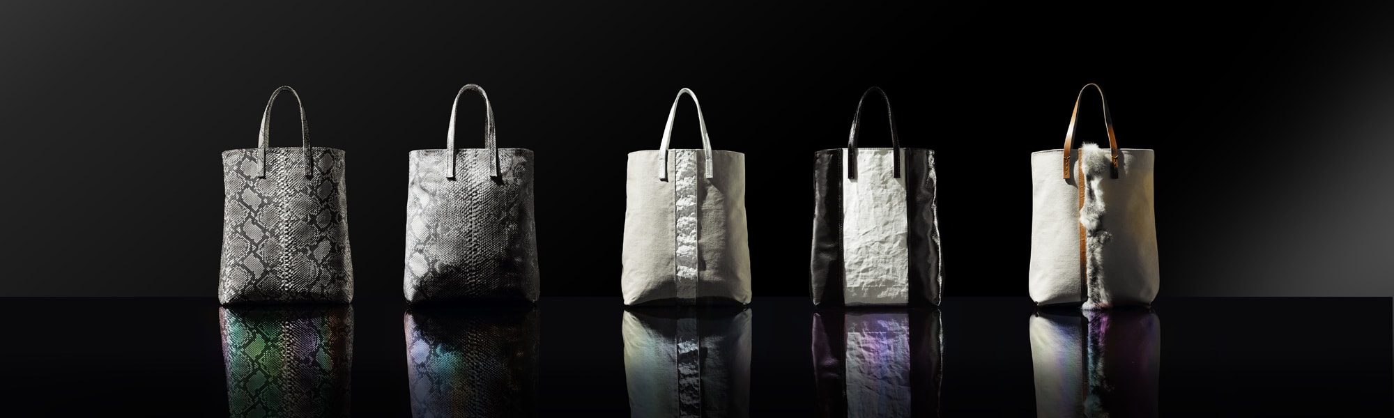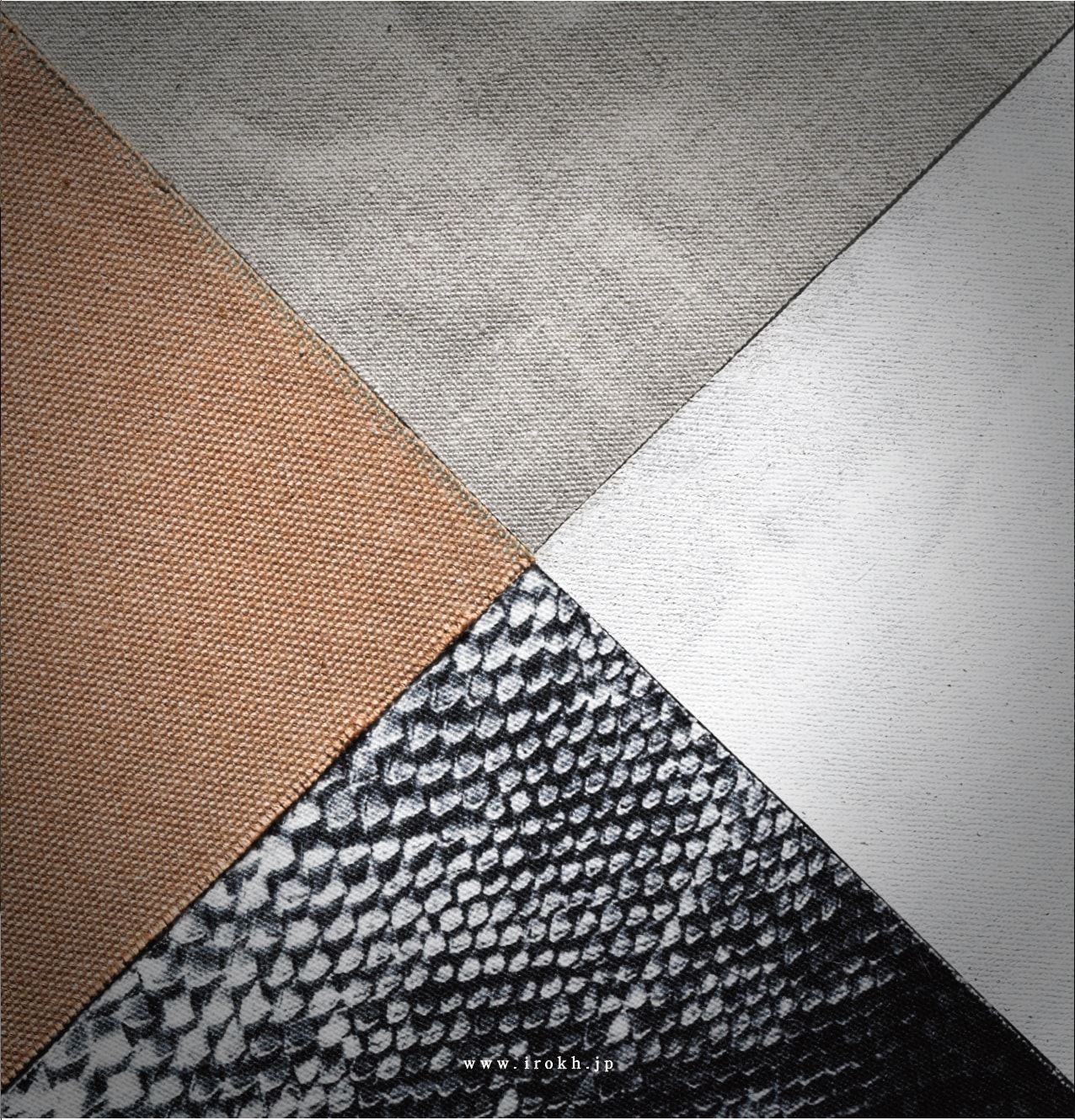 素材感あふれる帆布だからこそ、IROKHの開発は難しいものでした。シンプルなバッグではなく、先進的な要素もなくてはいけない。様々な素材や製法を見て回り、帆布の素材感をより豊かに見せる方法。一つ行き着いた手法で言えば、厚手の帆布の触り心地がヘビのウロコのように思えたため、パイソン革でトートバッグを製作、それを劇的な光を当て360度から撮影し、そのまま帆布にプリントしたバッグを製作しました。きめ細やかな素材に綺麗に印刷されたプリントとはちがい、帆布の素朴な風合いがエレガンスな風合いに変化し今までになかったものになりました。